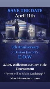 –In loving memory of Darian Jarrott — The 5th Anniversary of Darian Jarrott’s E.O.W – Cornhole Tournament April 11th, 2026.